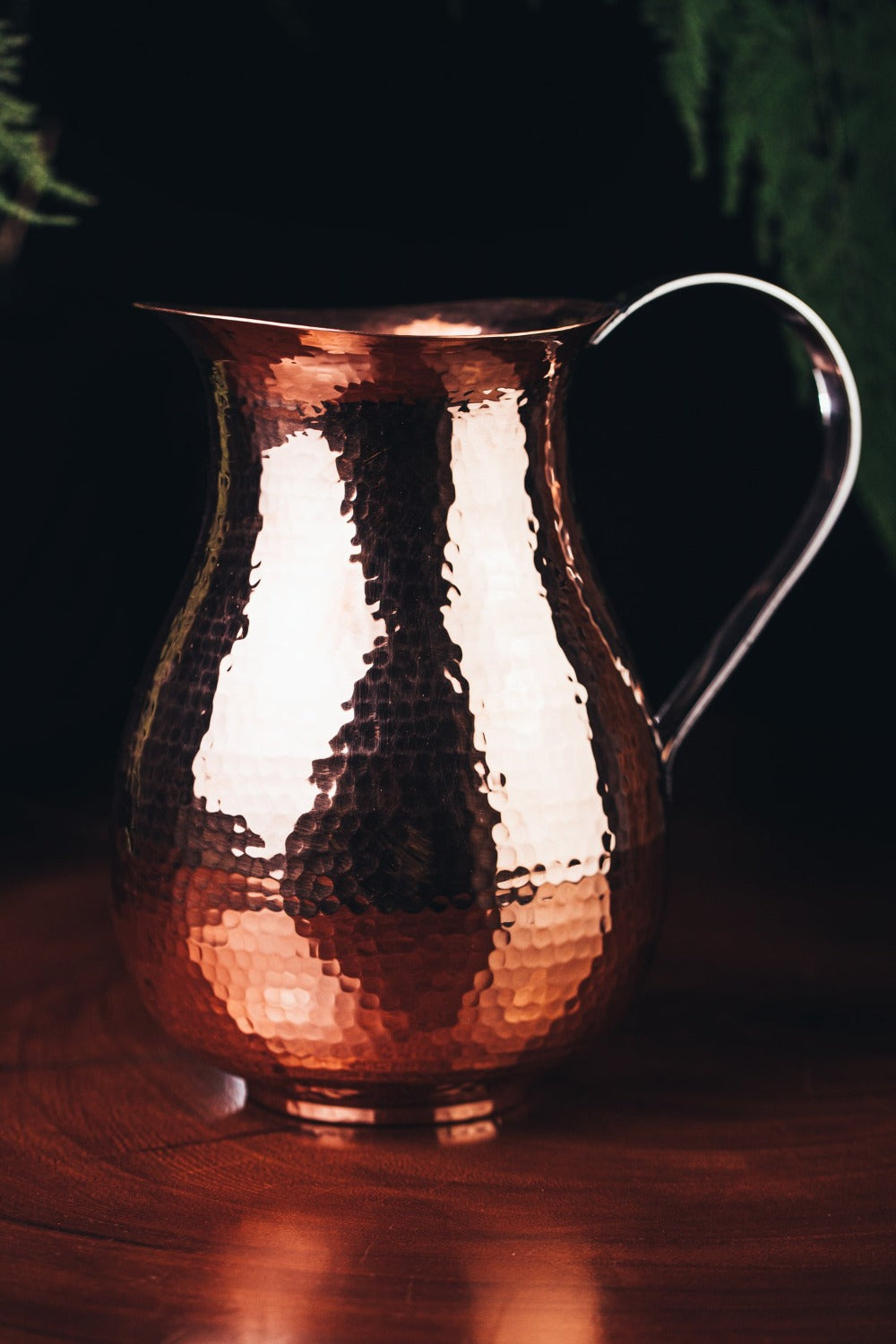 Discover our exclusive copper jar, meticulously crafted to fuse unrivalled versatility and elegance. This jar is not only a functional work of art, but also a tribute to the natural beauty of polished copper. Perfect to stand out on any occasion, it adds a touch of sophistication when serving water or as a prominent decorative piece. It is the perfect choice for those looking to combine quality, aesthetics and a touch of luxury in every detail.