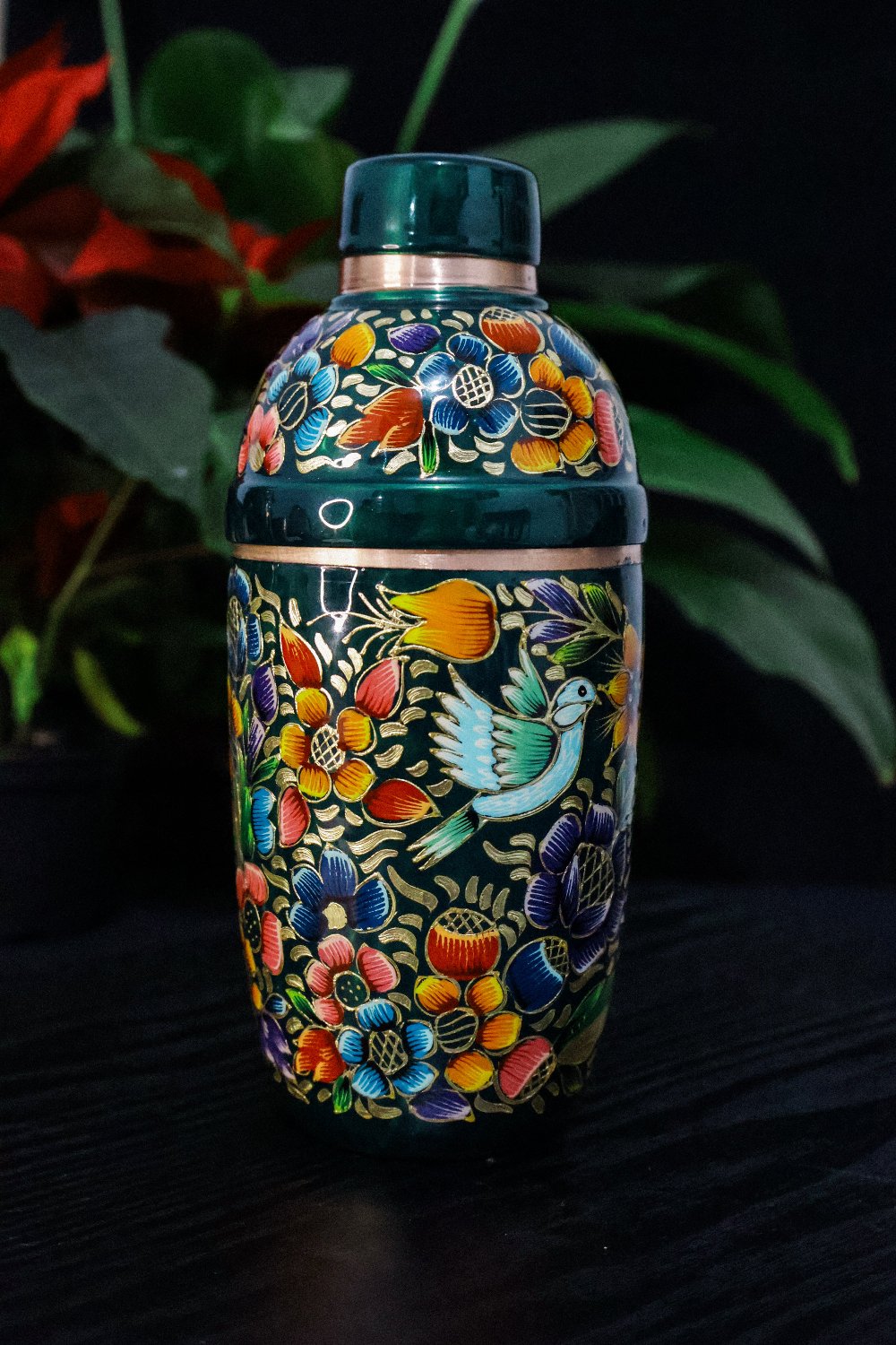 Discover our newest addition to the Hand Painted family: an exclusive design inspired by vibrant mosaic canaries, celebrated for their rich variety of colors. Discover the pure essence of our cobbler, crafted from authentic copper and meticulously handcrafted by local artisans. Each piece not only enhances your cocktail-making experience but also honors the natural beauty of copper and the sustainability of its production. Immerse yourself in Mexican rich tradition and add this essential accessory to your collection.
