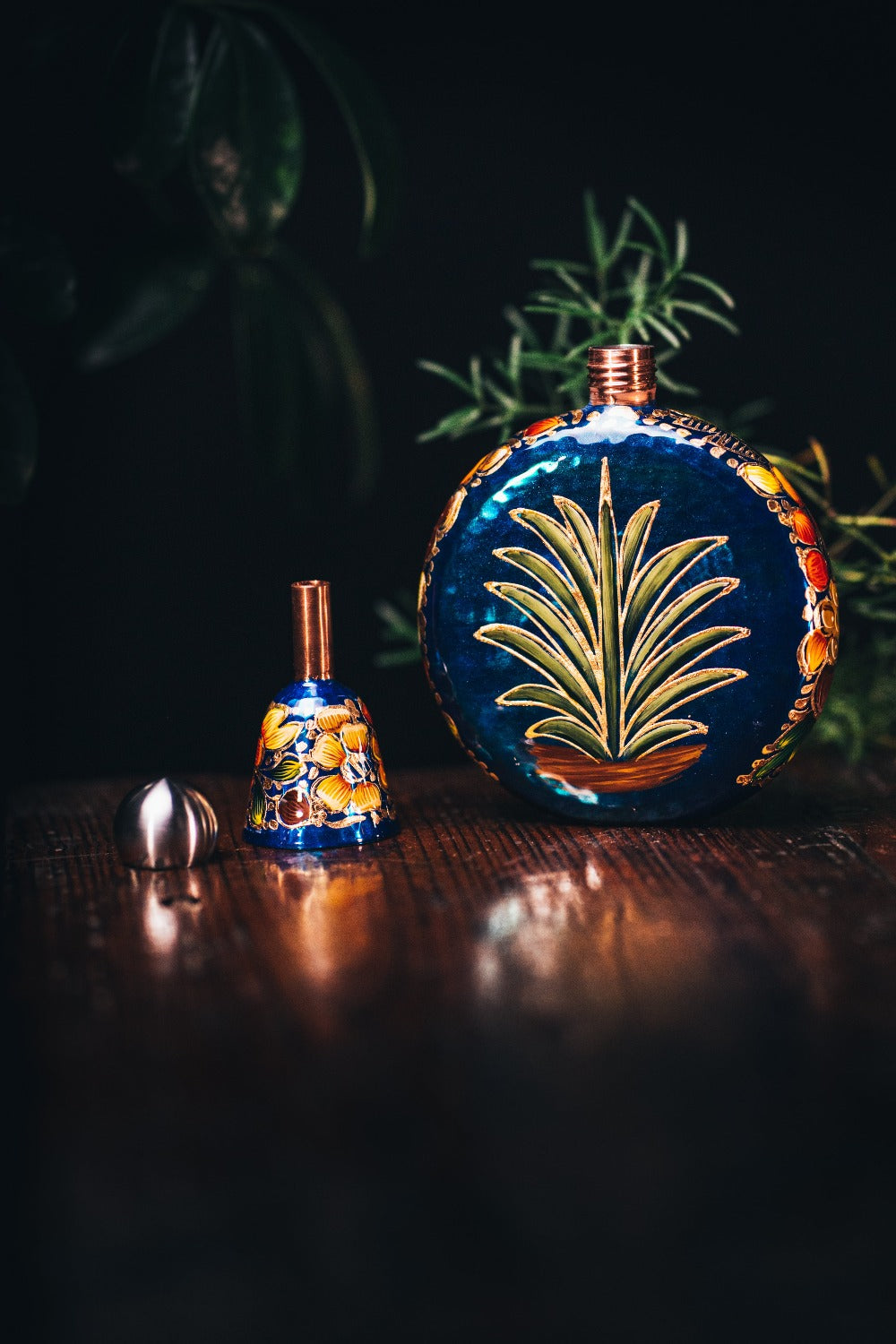 Hand-painted in the design of an agave, our flask celebrates nature and artistic talent. Every detail reflects the dedication of our craftsmen, who turn copper into a unique work. This flask is not only functional, but also a tribute to natural beauty, perfect to give and enjoy at any special time.