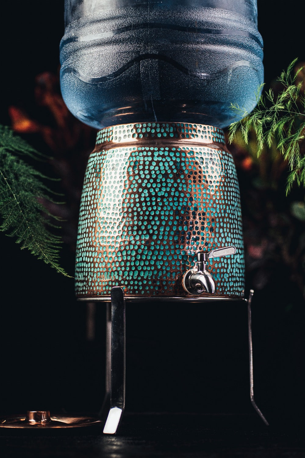 Our handcrafted, hand-hammered copper water dispenser combines aesthetic beauty with exceptional functionality. Every detail reflects the skill of our Mexican artisans, providing both elegance and practicality in any environment. It is the ideal choice for those who appreciate traditional art and quality in every sip of fresh water.