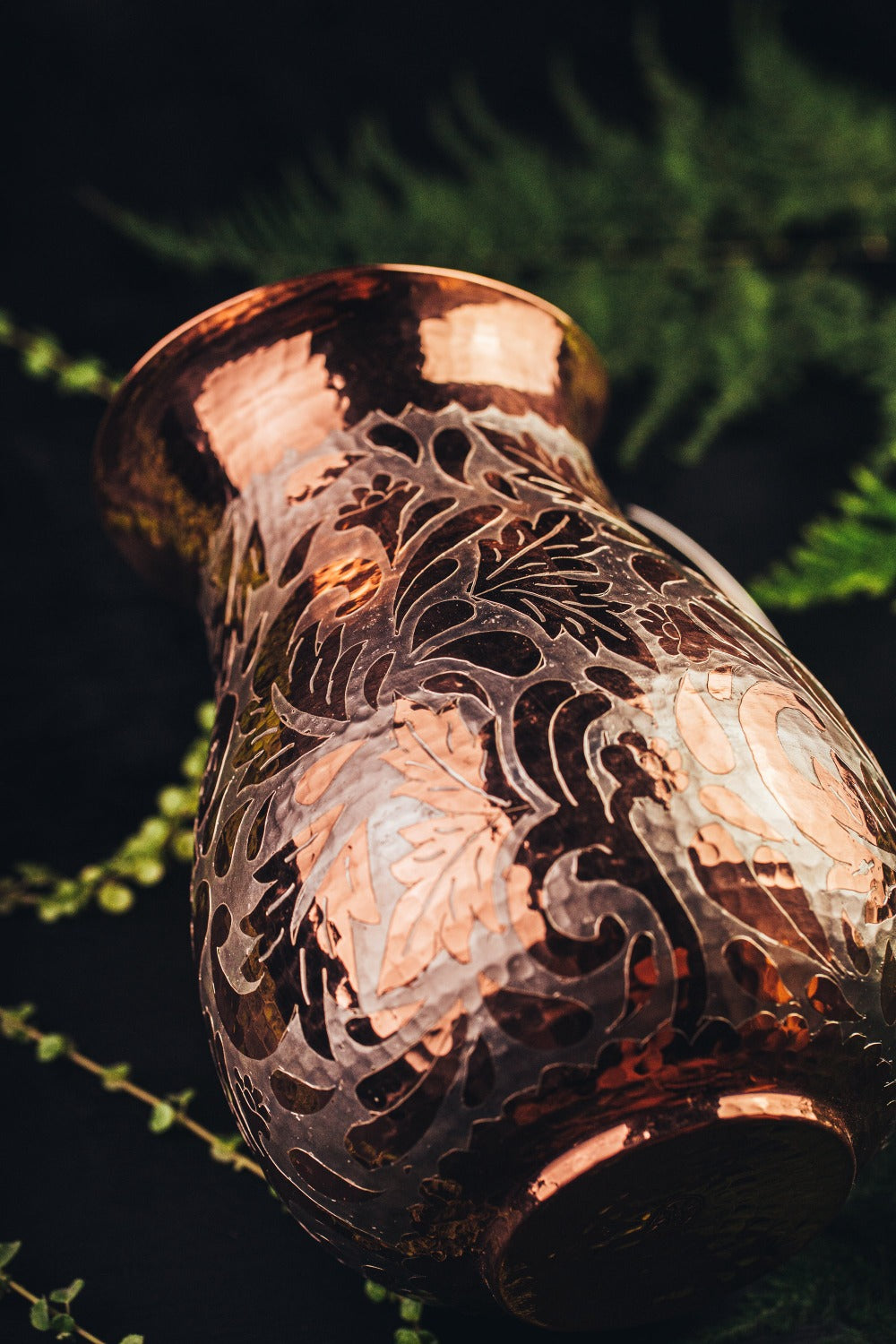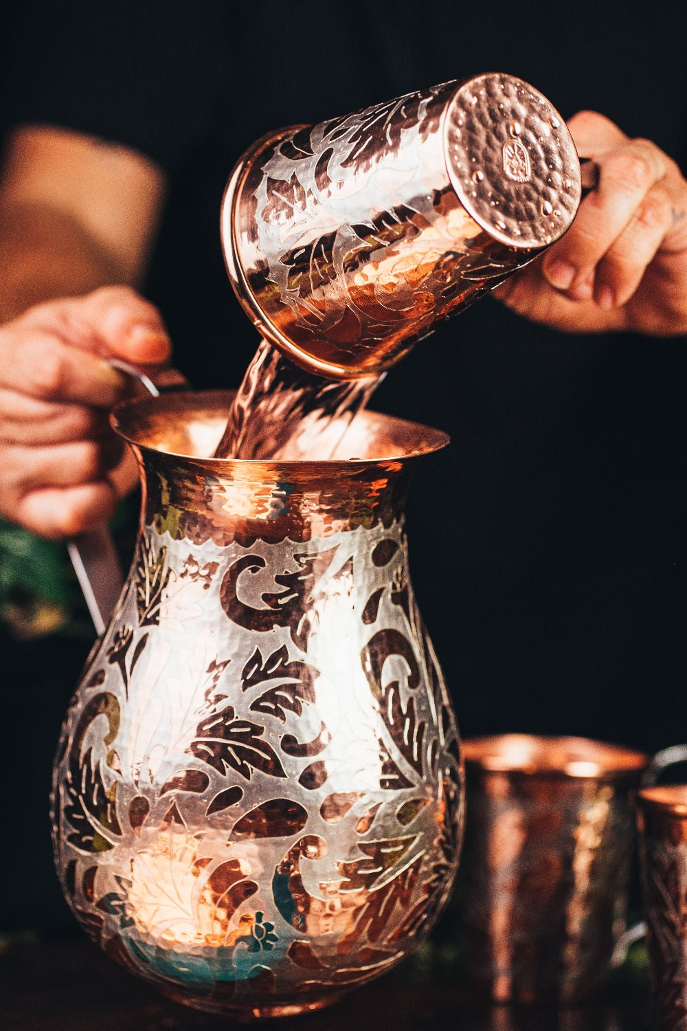 Discover our exclusive copper jar, meticulously crafted to fuse unrivalled versatility and elegance. This jar is not only a functional work of art, but also a tribute to the natural beauty of polished copper. Perfect to stand out on any occasion, it adds a touch of sophistication when serving water or as a prominent decorative piece. It is the perfect choice for those looking to combine quality, aesthetics and a touch of luxury in every detail.