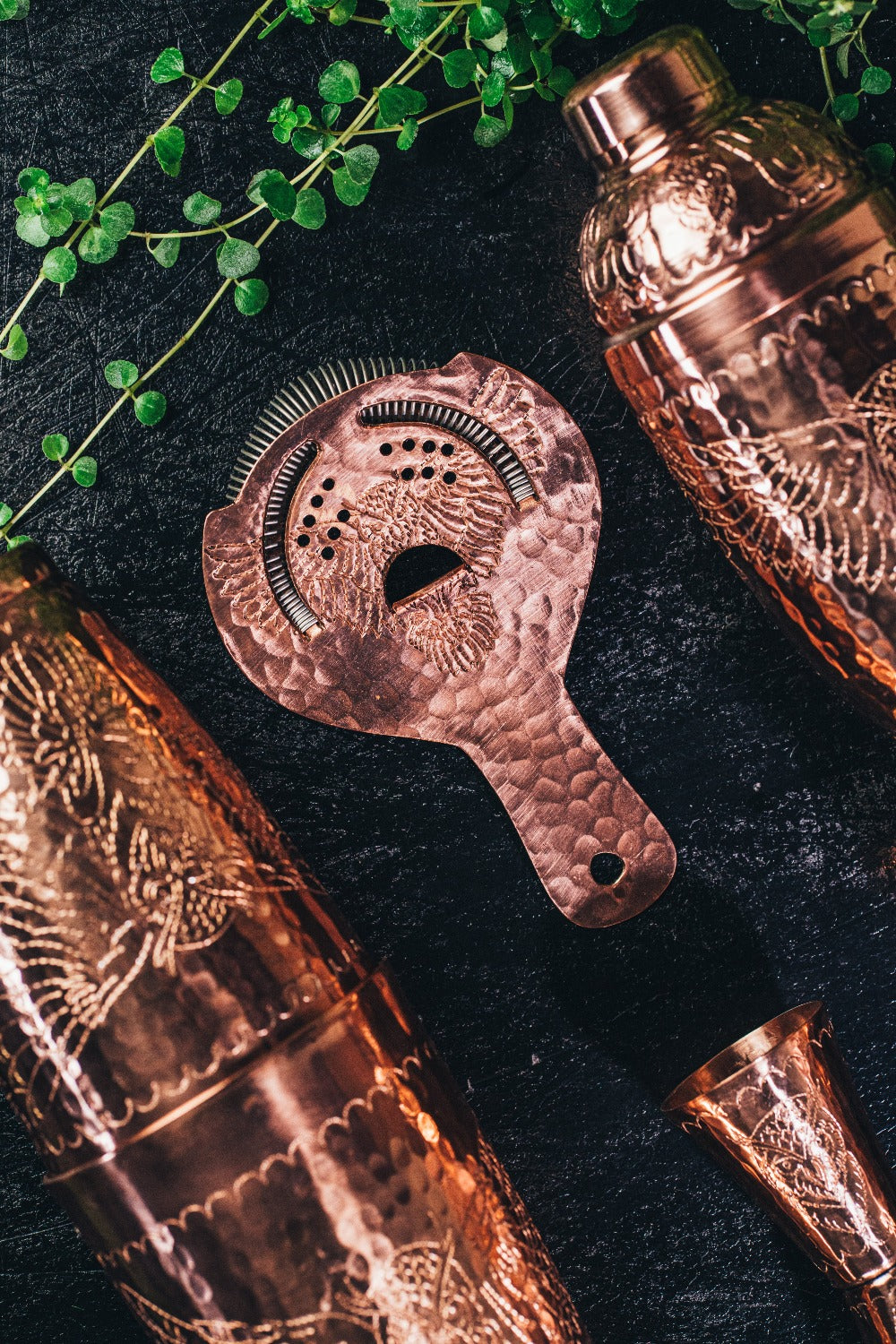 Explore our exclusive handmade copper barware strainer, a masterpiece that enhances cocktail experiences with its artisanal craftsmanship. Each piece is uniquely crafted, showcasing authenticity and charm. Elevate your bar with this functional and elegant addition. Don't settle for ordinary – discover the art of mixology with our artisan copper strainer today!
