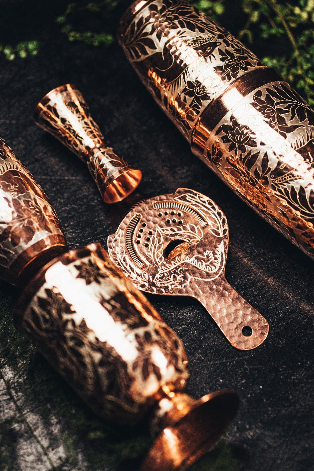 Explore our exclusive handmade copper barware strainer, a masterpiece that enhances cocktail experiences with its artisanal craftsmanship. Each piece is uniquely crafted, showcasing authenticity and charm. Elevate your bar with this functional and elegant addition. Don't settle for ordinary – discover the art of mixology with our artisan copper strainer today!