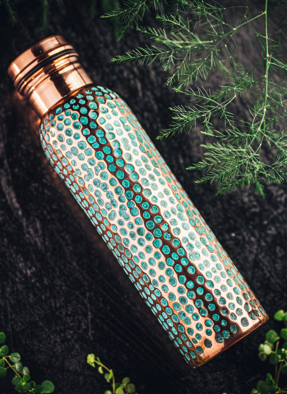 Our handpainted copper water bottle combines exceptional art and functionality. Every detail reflects the dedication of our craftsmen, highlighting the natural beauty with an ergonomic and practical design. It is perfect to accompany you on any occasion, being more than a vessel: it is an expression of Mexican craftsmanship and a tribute to the connection with nature.